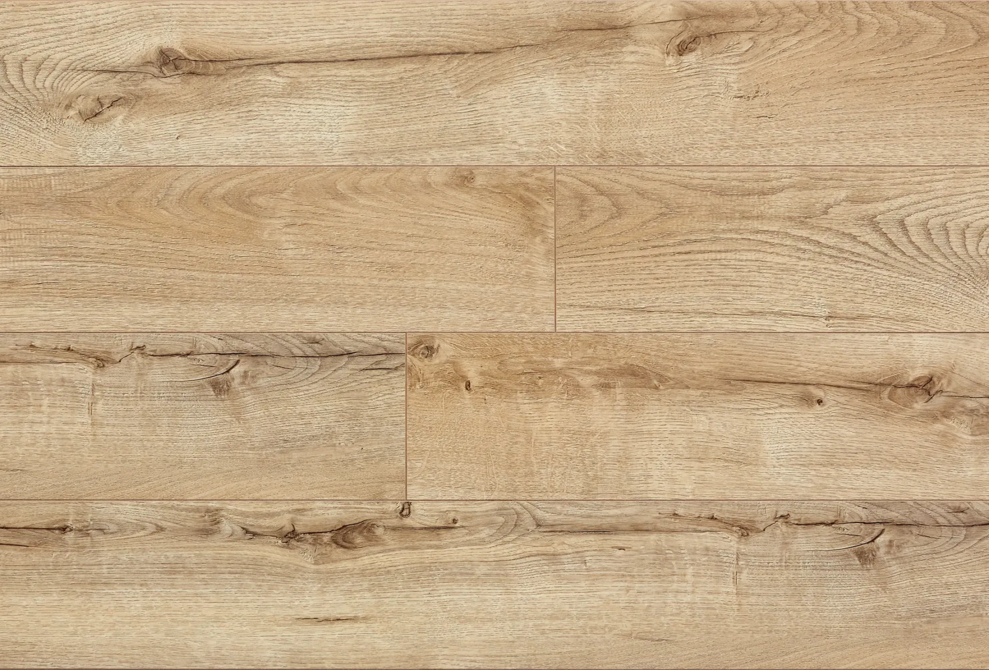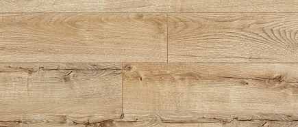 Синхронный рельеф совпадает с рисунком декора — поверхность неотличима от натурального паркета